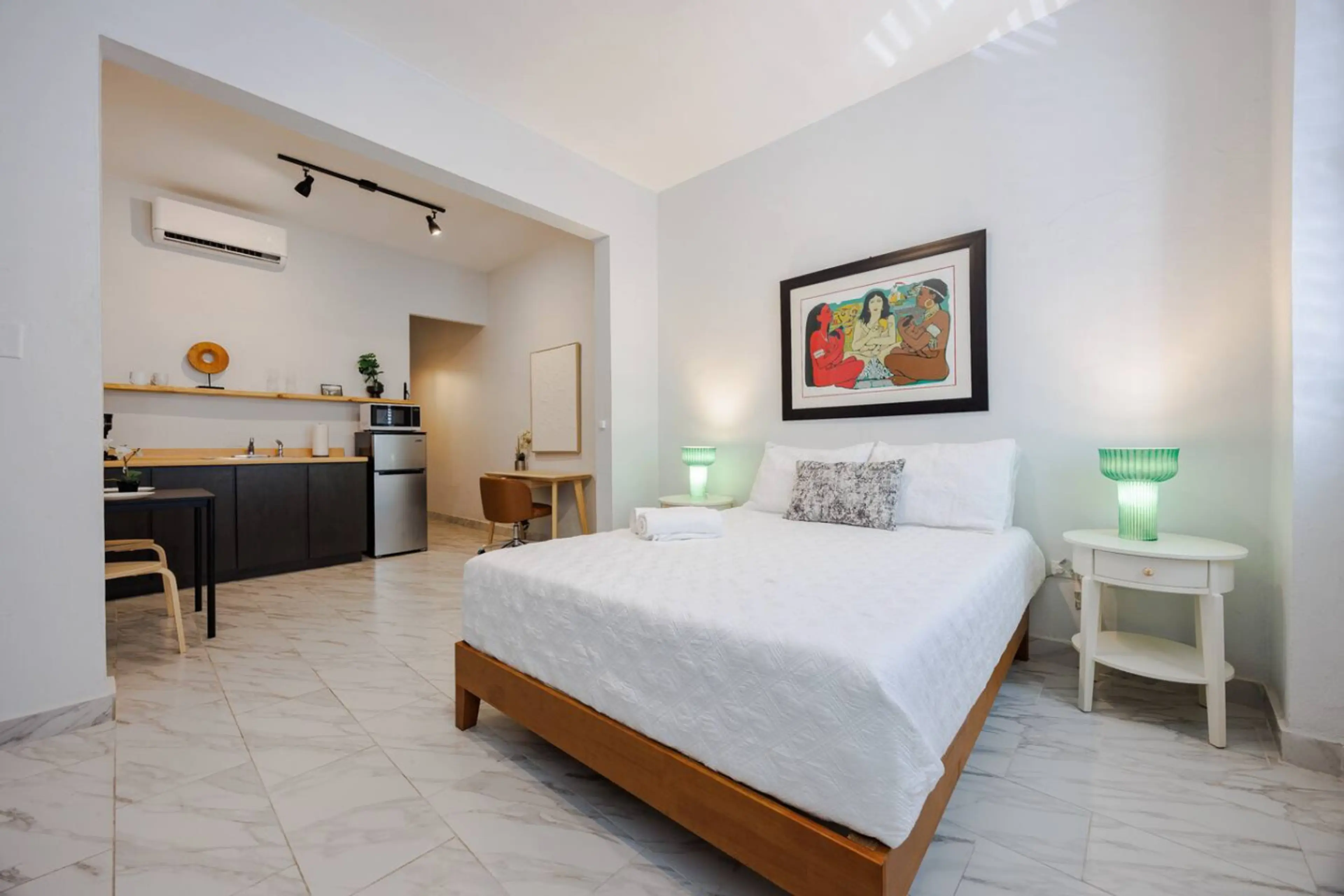 Experience coastal charm in this bright studio located between Condado and Old San Juan. Designed with tropical flair, it features a queen bed, modern kitchenette, and workspace. Enjoy beach towels, Wi-Fi, and smart TV. Just steps from Escambrón Beach and local cafés, this peaceful retreat offers ea...