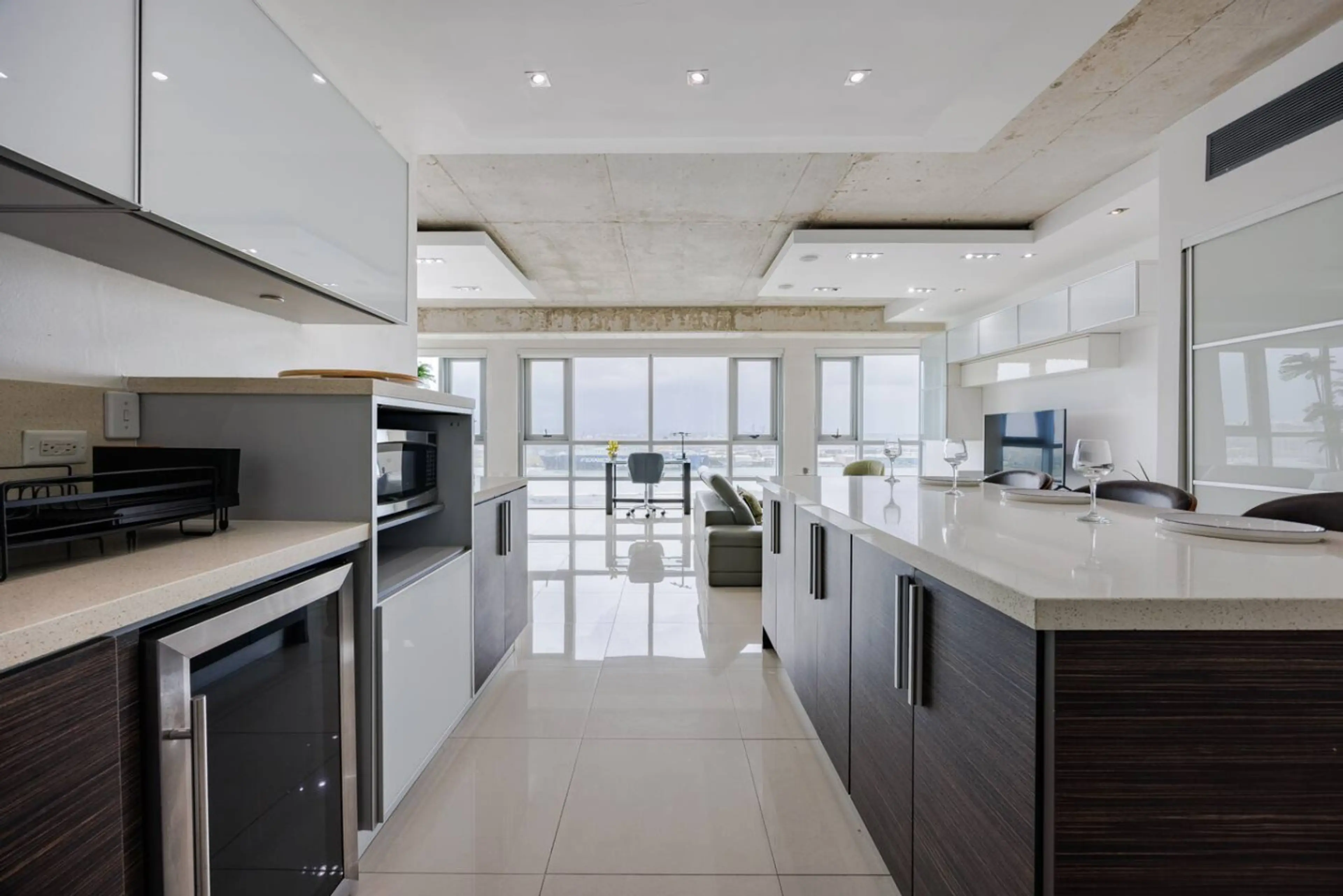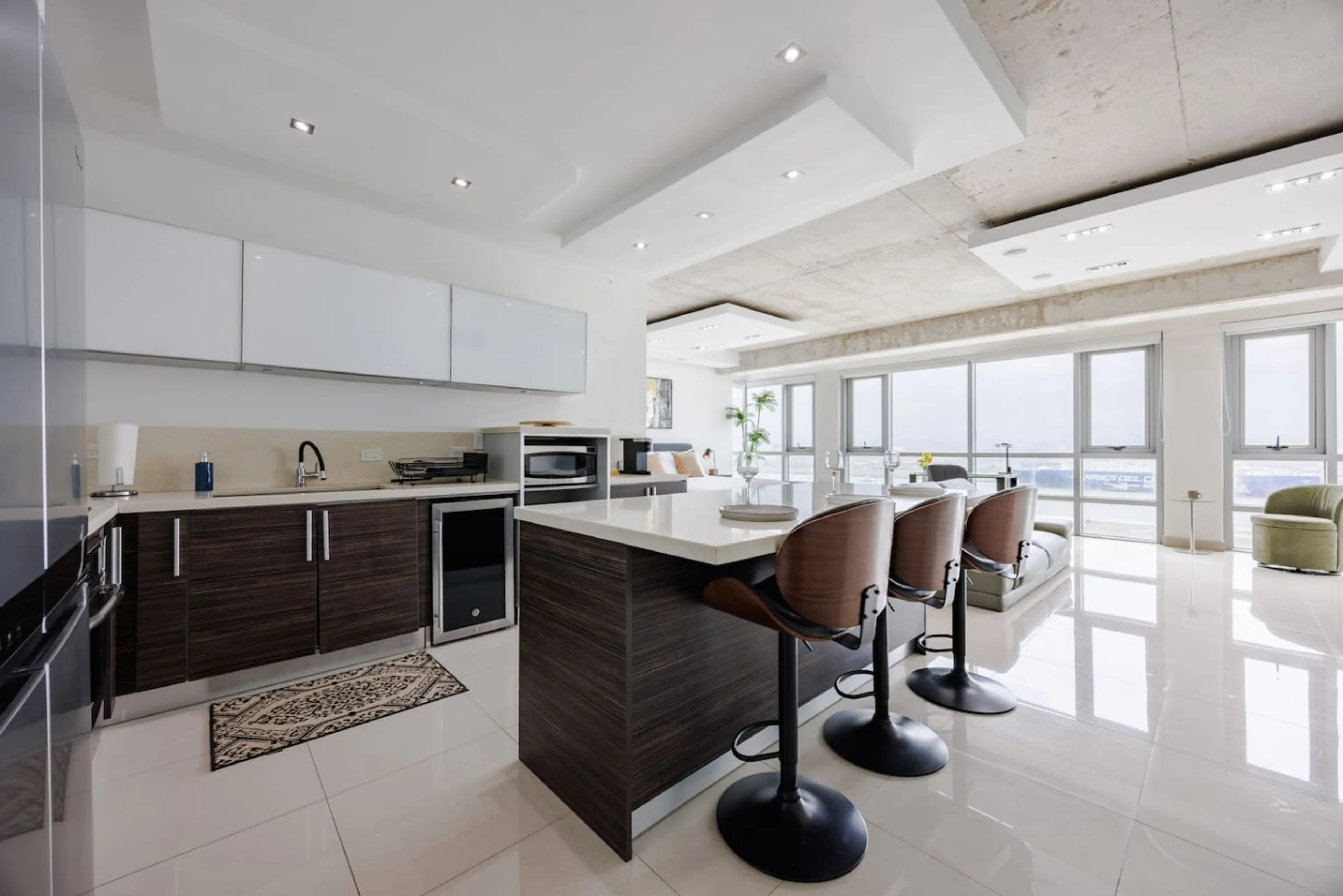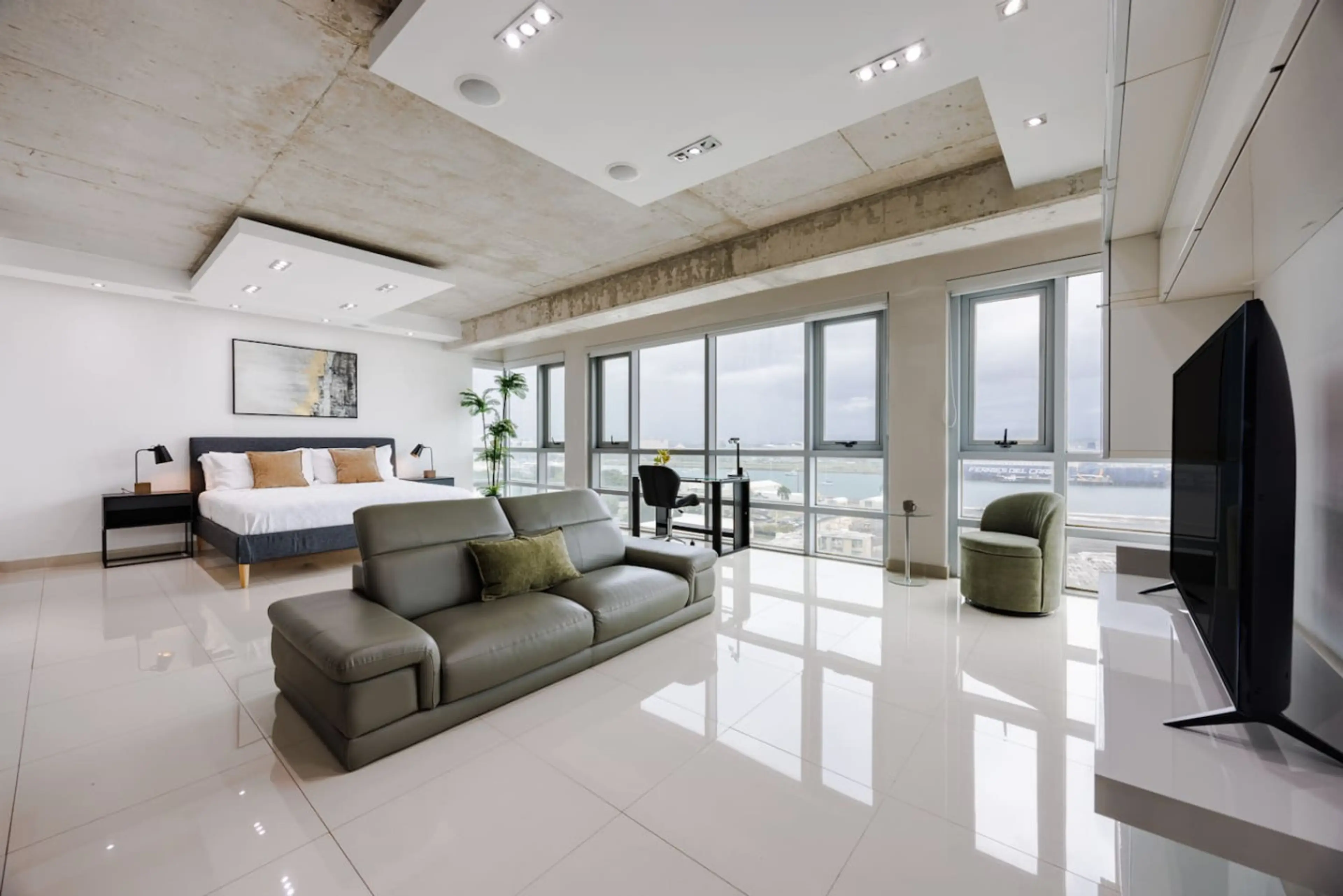 Experience panoramic lagoon and city views from this elegant 7th-floor loft between Condado and Old San Juan. Designed for comfort and style, it features a king bed, full kitchen, in-unit laundry, free parking, central A/C; backup power generator and water cistern. Enjoy hotel-style amenities, a mod...
